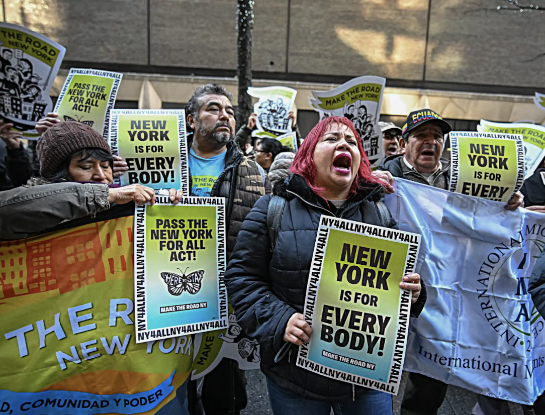 Advocates protesting in front of New York State Governor Kathy Hochul’s Office. Photo by Dean Moses, AMNY.